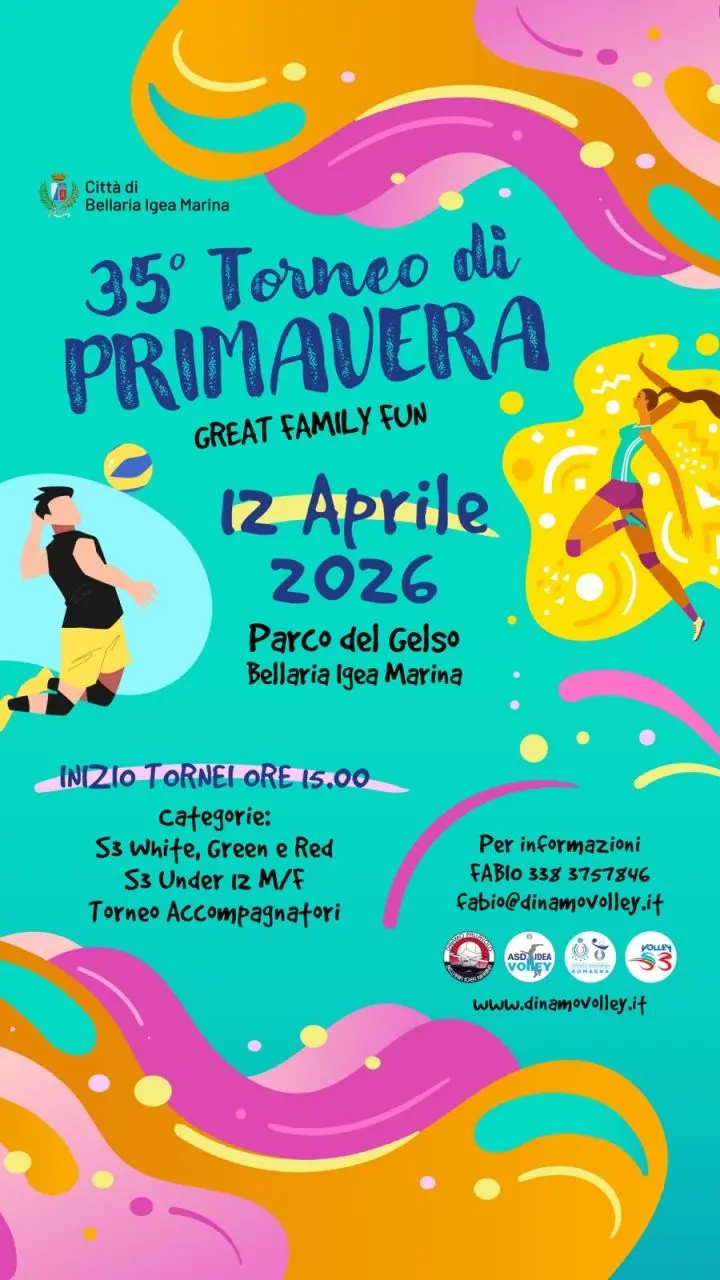Ritorna nella sua 35^ edizione il tradizionale Torneo di Primavera organizzato da Dinamo Pallavolo Bellaria e Idea Volley; dopo il grande successo dello scorso anno che ha riscattato in pieno il forzato stop per maltempo dell'edizione 2023, Domenica 12 Aprile 2026 lo splendido Parco del Gelso tornerà a fare da cornice agli oltre 30 campi che ospiteranno atleti e società per un pomeriggio di volley e divertimento.